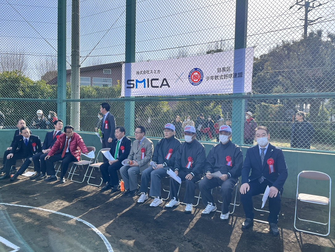 弊社代表が目黒区長と共に始球式を務めさせていただきました!ナイスピッチングです!
